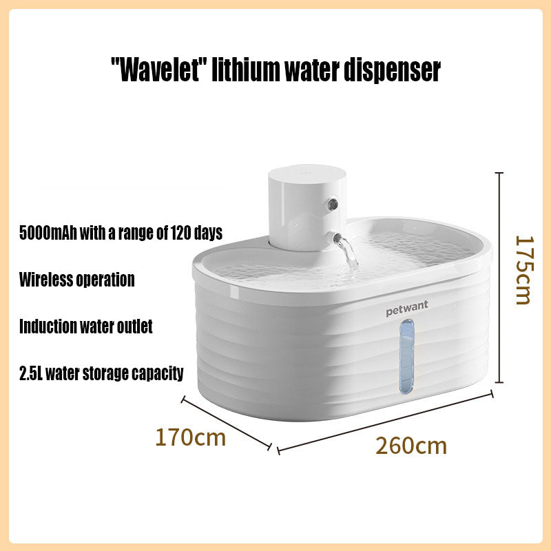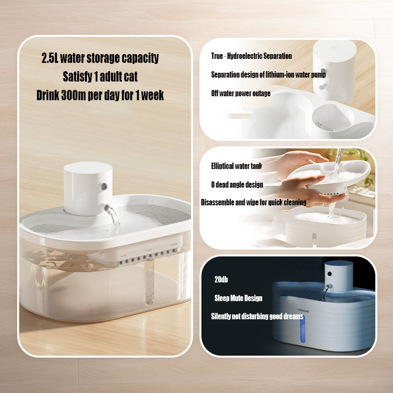 βš™οΈ Wireless operation with long-lasting battery life Intelligent hydration protocols with sensor activation 2.5L capacity with adjustable flow modes BPA-free construction for safe, clean drinking water Whisper-quiet design ideal for sensitive cats Easy disassembly for quick cleaning and refilling πŸ“ Specifications Capacity: 2.5L Dimensions: 8.5” L Γ— 6.5” W Γ— 6.5” H Weight: 1.8 lbs. Material: BPA-free plastic, stainless steel filter Color: White Primary Customers Cat guardians seeking a premium, low-maintenance hydration solution that blends quiet operation with intelligent water flow for improved feline health. πŸ“œ Real-World Classification Wireless Pet Water Fountain – 2.5L – Infrared Sensing – Multi-Mode – White Common Search Terms Cat water fountain, Wireless cat fountain, Automatic pet water dispenser, Rechargeable cat fountain, Smart pet fountain, Cat hydration station, Cat water bowl alternative, Quiet cat fountain, 2.5L cat fountain